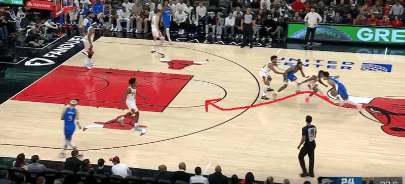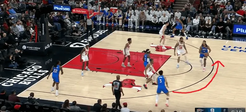 接到球快速调整得到半空位出手机会。麦凯恩的跑动投射能力是雷霆其他球员几乎不具备的,以赛亚乔在这方面也并没有稳定的续航。